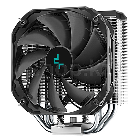 Кулер DeepCool AS500 башенного типа, с пятью тепловыми трубками, поддержкой A-RGB подсветки, и вентилятором с ШИМ-управлением. Высокая производительность охлаждения в утонченном дизайне.