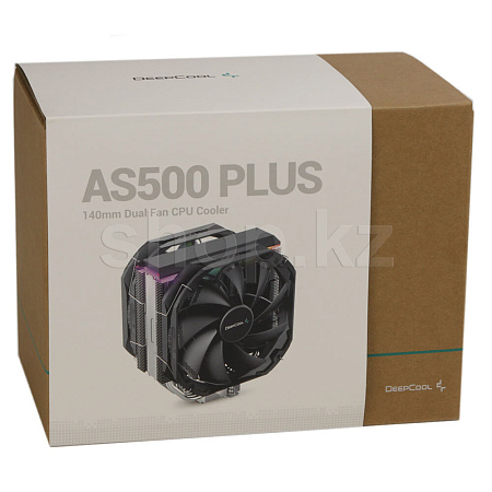 Кулер DeepCool AS500 Plus представляет собой башенный кулер, оснащённый пятью тепловыми трубками и укомплектованный двумя вентиляторами 140мм PWM, имеющими тонкий профиль и высокую производительность.