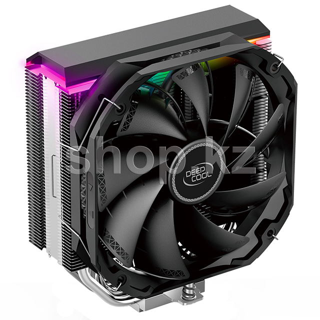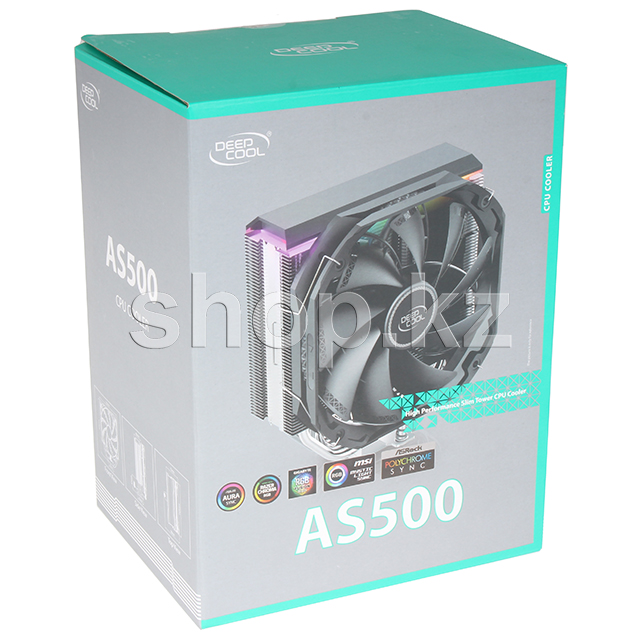 Кулер DeepCool AS500 башенного типа, с пятью тепловыми трубками, поддержкой A-RGB подсветки, и вентилятором TF140S с ШИМ-управлением. Высокая производительность охлаждения в утонченном дизайне.