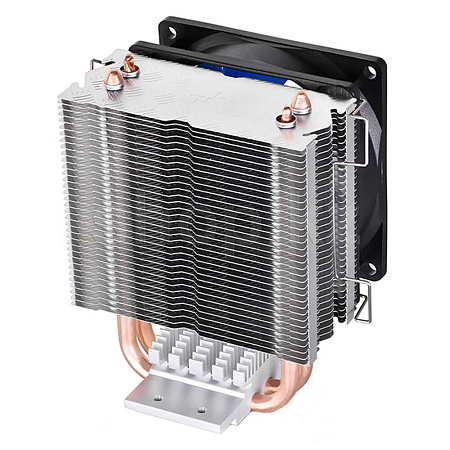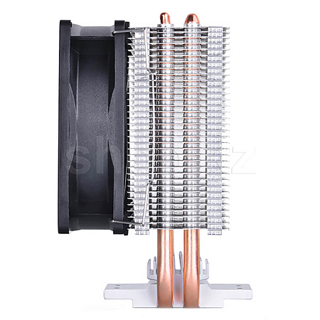 Две трубки из запеченного порошка непосредственно соприкасаются с поверхностью центрального процессора для быстрого отвода тепла.