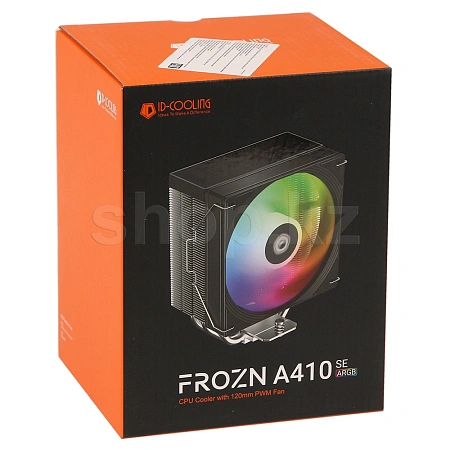 ID-Cooling Frozn A410 SE ARGB - универсальный кулер башенного типа, который выглядит стильно благодаря ARGB подсветки, алюминиевому радиатору и медным трубкам. В качестве комплектного вентилятора используется 120-ти мм с диапазоном рабочих скоростей от 300 до 2000 об/мин. Рассеиваемая мощность кулера составляет 180 Вт.
