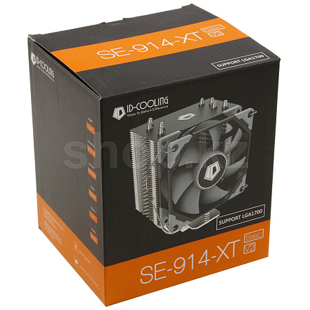 ID-Cooling SE-914-XT Basic V2 - универсальный кулер башенного типа, который выглядит стильно, благодаря алюминиевому радиатору и медным трубкам. В качестве комплектного вентилятора используется 92-х мм с диапазоном рабочих скоростей от 600 до 2200 об/мин. Рассеиваемая мощность кулера составляет 150 Вт.