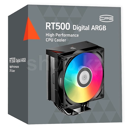 Кулер для процессора PCCooler RT500 Digital ARGB BK [RT500-BKAWYL-GL] оснащен цифровым индикатором температуры нагрева. За стабильное рассеивание мощности до 245 Вт отвечают алюминиевый радиатор, 5 тепловых трубок, а также 120-мм вентилятор с автоматической регулировкой скорости в диапазоне 500-2200 об/мин и подсветкой ARGB.