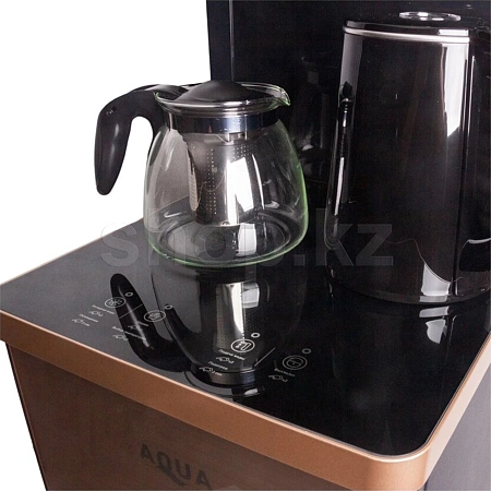 Встроенный чайный столик удобно расположен и позволяет держать напитки под рукой, в то время как изысканный дизайн кулера гармонично вписывается в любое пространство.