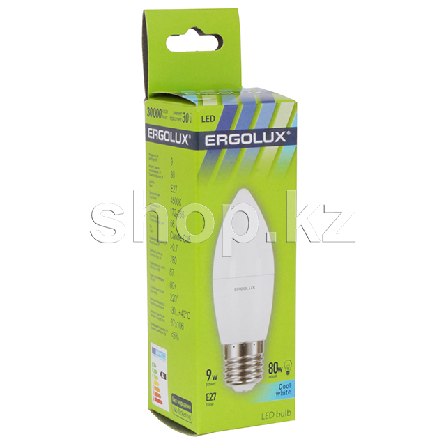 LED лампочка Ergolux LED-C35-9W-E27-4K, 9Вт, 4500К