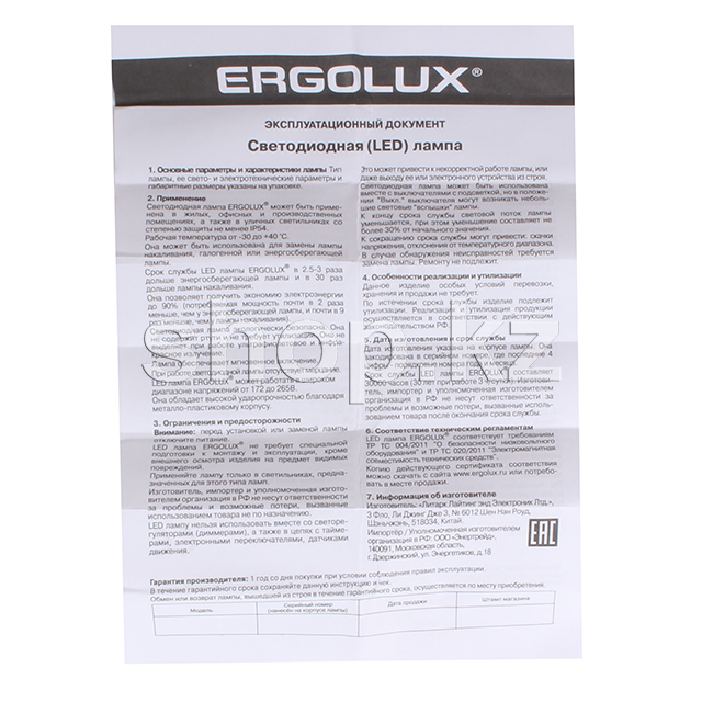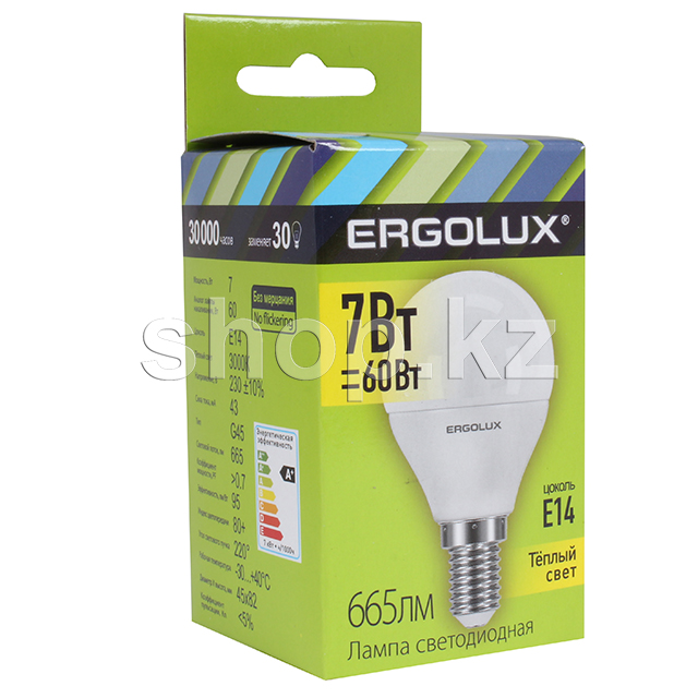 Ergolux LED-G45-7W-E14-3K, 7Вт, 3000K LED шамы
