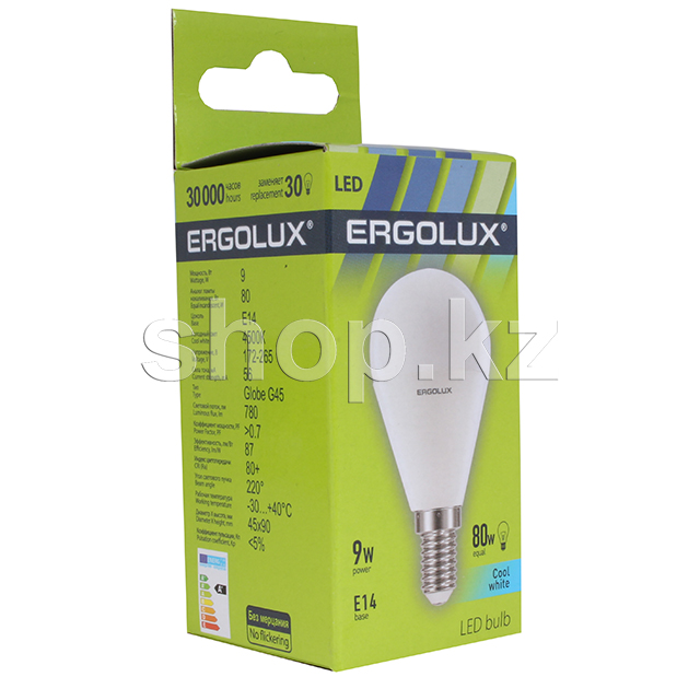 Ergolux LED-G45-9W-E14-4K, 9Вт, 4500K LED шамы