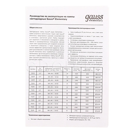 Лампы Gauss выполнены с учетом всех норм и требований СанПиН, что гарантирует безопасность работы и длительный срок эксплуатации - до 25000 часов. Помимо высокой мощности, такая модель устойчива к вибрациям, механическим ударам, а также обладает высокой термостойкостью.