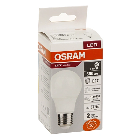 Osram VALUE LVCLA60 7W-E27-4000K, 7Вт, 4000К LED шамы