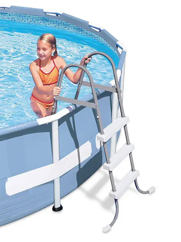 Лестница для каркасных и надувных бассейнов INTEX с высотой борта 107 см. Легко и быстро устанавливается, имеет широкий угол между сторонами, достаточный для того чтобы не касаться стенок бассейна и в тоже время быть удобной в использовании.