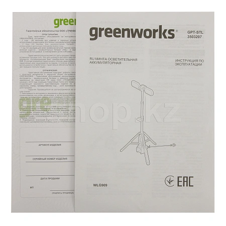 Мачта осветительная аккумуляторная Greenworks 24V / 110-240V GPT-STL (3503207) поставляется без АКБ и ЗУ.