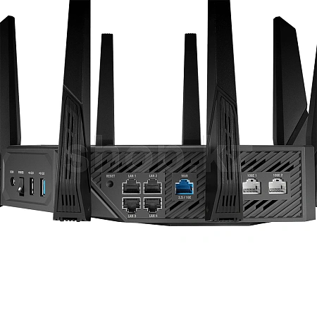 ROG Rapture GT-AXE16000 предлагает пару портов 10G Ethernet с двойной функцией (локальное или интернет-подключение), четыре порта 1G Ethernet и один интернет-порт 2.5G Ethernet. Таким образом, вы получаете возможность предоставить большую пропускную способность проводным сетевым устройствам, а также воспользоваться всеми преимуществами ультраскоростного интернет-канала.