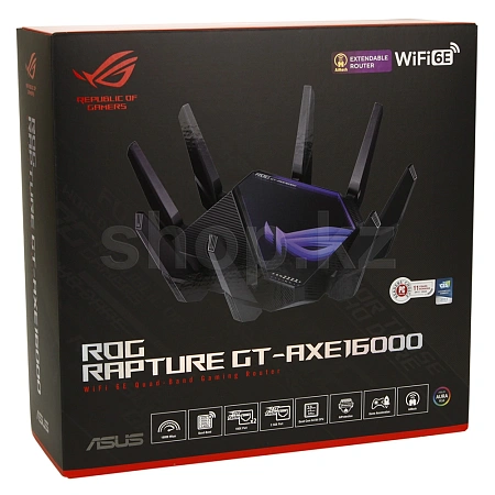 ROG Rapture GT-AXE16000 – первый четырех диапазонный игровой маршрутизатор стандарта Wi-Fi 6E, обеспечивающий общую скорость передачи данных до 16000 Мбит/с. Устройство работает сразу в четырех беспроводных диапазонах (2,4 ГГц, два 5 ГГц, 6 ГГц) и поддерживает каналы связи шириной 160 МГц.