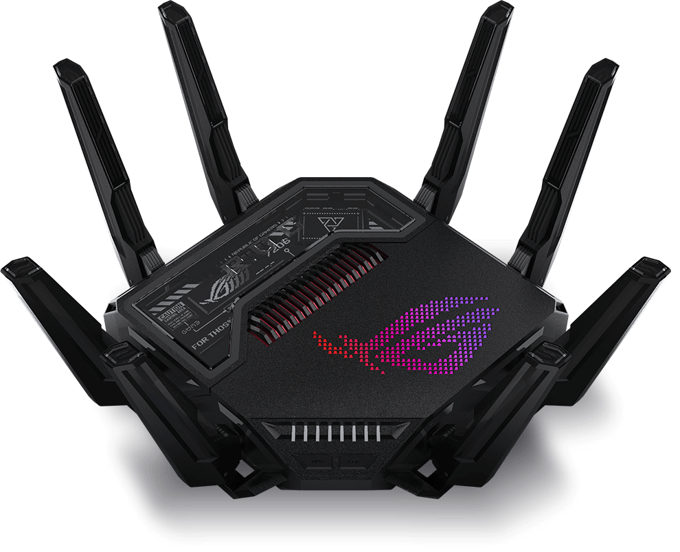 Устройства серии Rapture задают новые стандарты возможного в гейминге и сетевых технологиях. Игровой маршрутизатор ROG Rapture GT-BE98 – четырехдиапазонная модель стандарта Wi-Fi 7 с пропускной способностью до 25 Гбит/с и парой проводных портов 10G Ethernet. Шагаем в будущее – с WiFi 7!