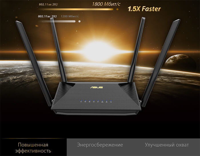 Двухдиапазонный маршрутизатор стандарта Wi-Fi 6 (AX1800): технологии MU-MIMO и OFDMA, информационная защита AiProtection Classic на базе технологий Trend Micro