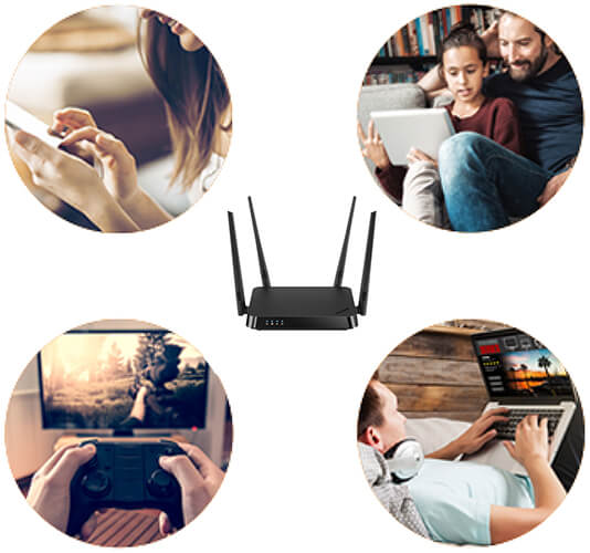Технология Multi-user MIMO позволяет распределить ресурсы маршрутизатора для эффективного использования Wi-Fi-сети несколькими беспроводными клиентами, сохраняя высокую скорость для потоковой передачи мультимедиа в высоком качестве, игр без задержек и быстрой передачи больших файлов.