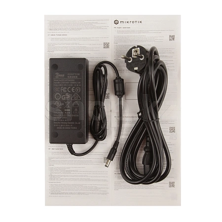 На hEX PoE питание подается комплектным блоком питания постоянного тока напряжением 24 В либо в пассивном режиме PoE на гигабитный порт № 1.