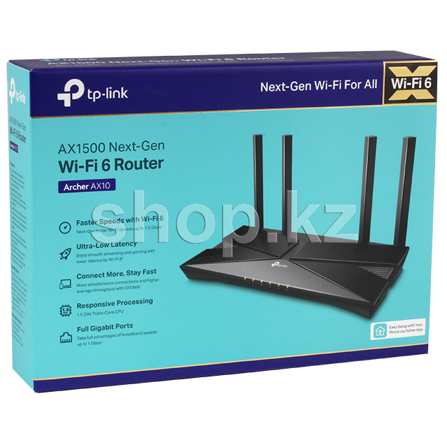 Технология Wi-Fi 6 - Archer AX10 оснащен новейшей беспроводной технологией Wi-Fi 6, обеспечивающей более высокие скорости, большую емкость и уменьшенную перегрузку сети. Wi-Fi 6 эффективно передает данные, позволяя пакетам данных для разных приложений совместно использовать одну широковещательную рассылку и сократить время ожидания. Наслаждайтесь безупречными видео и аудио чатами, улучшенными игровыми скоростями и мгновенной загрузкой видео на разных устройствах - и все это одновременно.