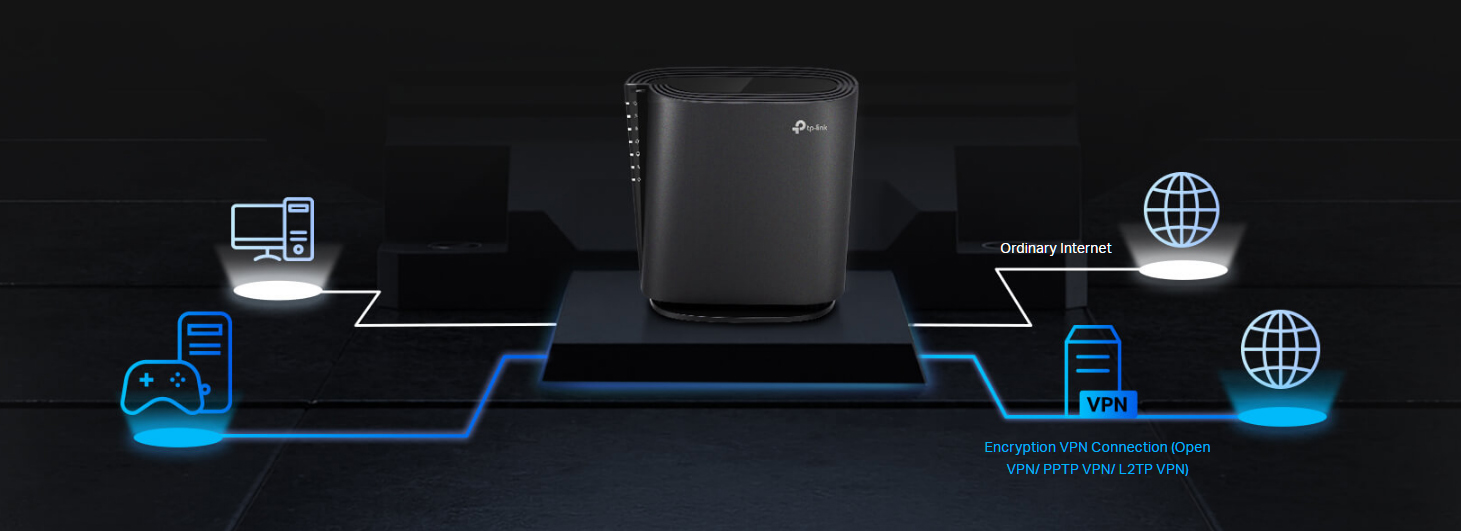 Позвольте устройствам в вашей домашней сети получать доступ к удаленным VPN-серверам без необходимости установки VPN-программного обеспечения на каждое устройство. Archer AX80 может одновременно использовать VPN и обычное интернет-соединение, обеспечивая безопасность и гибкость.