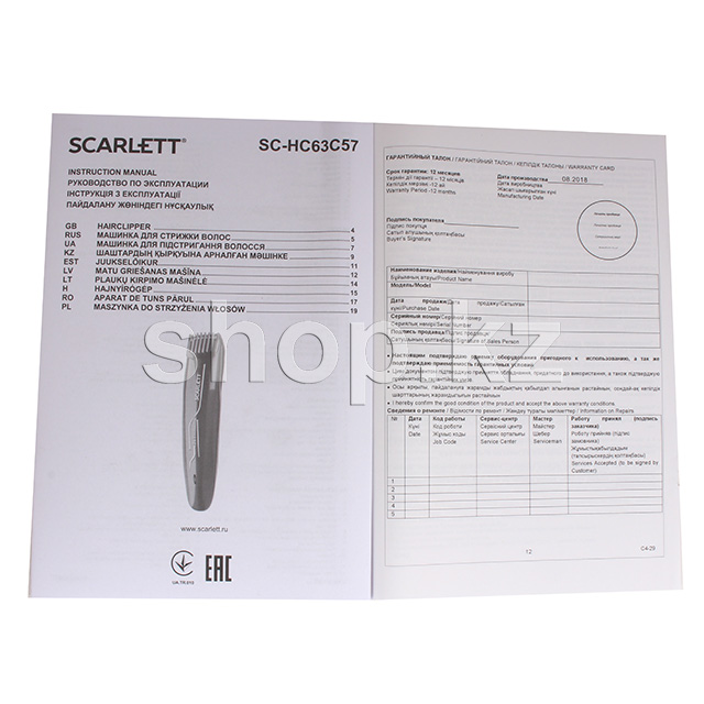 Scarlett SC-HC63C57 шаш қию машинасы