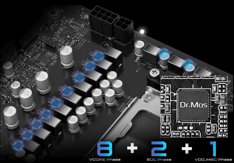 Имеет долговечные компоненты и равномерно подаёт питание CPU. Кроме того, отличается непревзойдёнными возможностями для оверклокинга с наименьшей температурой для продвинутых геймеров.