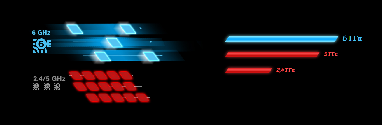 Технология Wi-Fi 6E работает на новом спектре частом 6ГГЦ, давая больше возможностей и ещё более качественный и быстрый трафик.