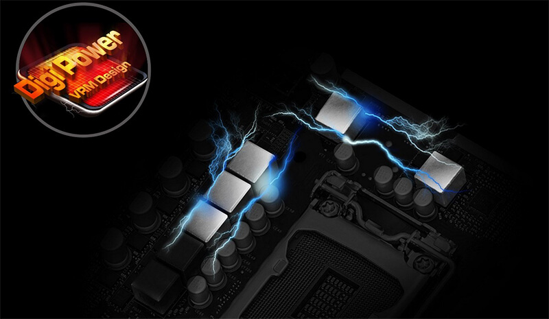 Дроссели премиум-класса ASRock 50A в три раза эффективнее создают ток насыщения, что обеспечивает улучшенную подачу вольтажа Vcore на материнскую плату.