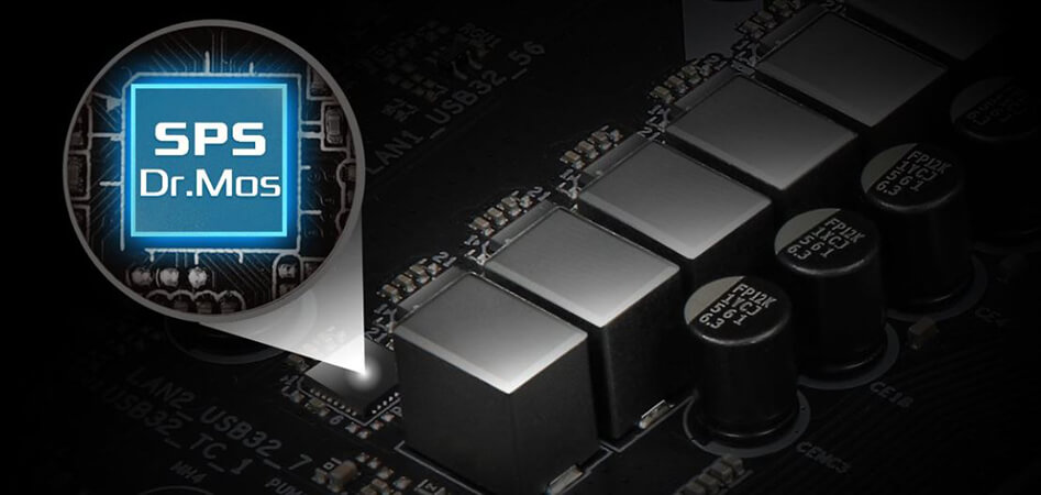 Новейшая технология распределения питания SPS (Smart Power Stage). Осуществляет мониторинг электротока и температуры на каждой фазе, обеспечивая плавное равномерное питание процессора, повышает производительность системы и даёт возможности по разгону компонентов.