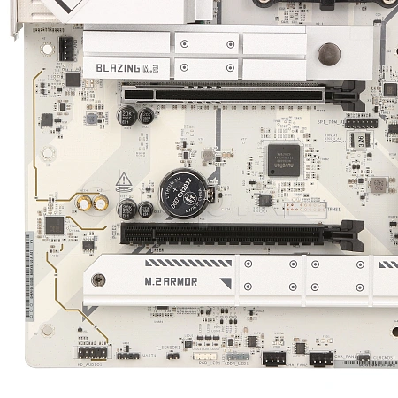 Первое, что бросается в глаза, - оптимизированная конструкция алюминиевого радиатора. Радиаторы очень важны для эффективного отвода тепла, особенно при интенсивных нагрузках, таких как игры или продуктивные задачи. Материнские платы, оснащенные радиаторами, могут эффективно управлять тепловыделением, обеспечивая стабильность и долговечность системы без особых усилий.