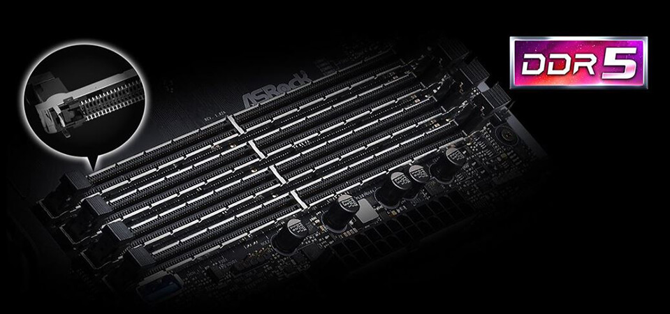 Усиленные разъёмы DIMM закреплены на плате методом поверхностного монтажа, что обеспечивает устойчивость и более стабильный сигнал. Благодаря такому решению можно разгонять память DRAM до сумасшедшей частоты 6400МГц.