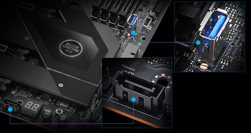 Защите ваши данные от хакеров! Инженеры ASRock создали по одному независимому порту USB и SATA, которые после активации через BIOS можно отключить от остальных портов для предотвращения атак со стороны вредоносных программ.