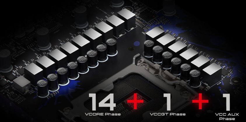 Плата оснащена новейшей технологией питания SPS (Smart Power Stage). Позволяет проводить мониторинга тока и температуры для каждой фазы, что гарантирует ровное питание ЦП и улучшенные возможности для разгона.