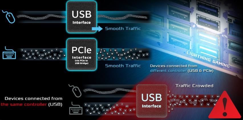 Разъёмы Lighting имеют свои отдельные контроллеры, которые гарантируют работу мыши и клавиатуры без задержек и лагов.