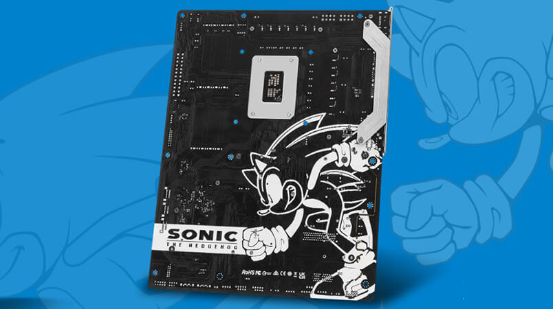 ASRock Z790 PG Sonic – это лицензионная материнская плата по мотивам игры «Sonic the Hedgehog» от SEGA. Задняя панель украшена знаменитыми 16-битными кольцами, а на обратной стороне платы нанесено изображение бегущего Соника. Компания ASRock выпустила эту материнскую плату в партнёрстве с SEGA в знак выхода новой игры «Sonic Frontiers».