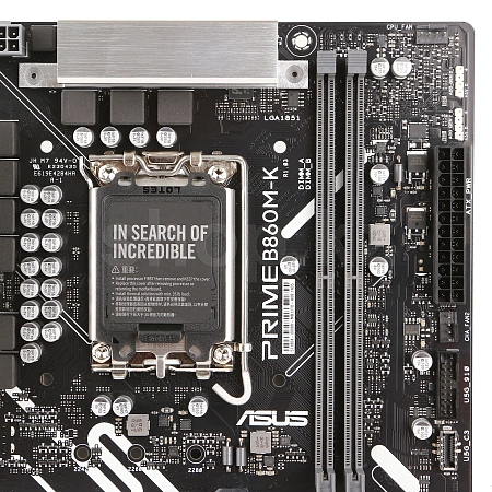 Материнская плата PRIME B860M-K оснащена несколькими встроенными радиаторами и набором гибридных разъемов для вентиляторов, которые помогают обеспечить охлаждение и стабильную работу вашей системы при интенсивных нагрузках.