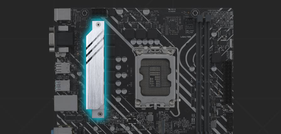Радиатор и термопрокладка VRM улучшают отвод тепла от МОП-транзисторов и дросселей, обеспечивая более эффективное охлаждение.