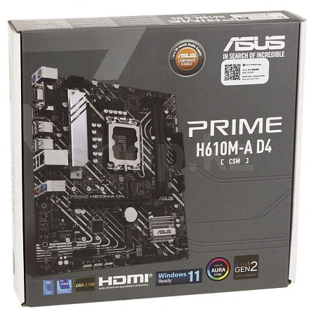 ASUS Prime H610M-A D4-CSM - это высокопроизводительный и надежный "фундамент", который станет качественной основной для системного блока. С этой моделью вам будут открыты широкие возможности для последующего апгрейда вашего компьютера по мере роста ваших требований к нему. Устройство поддерживает весь функционал процессоров Intel Core 12-го и 13-го поколения, дополняя их продвинутыми решениями от компании ASUS.