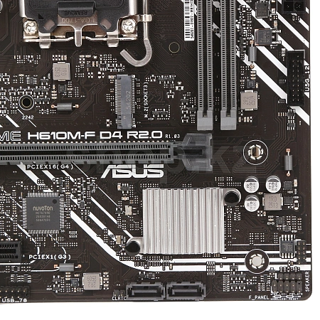PRIME H610M-F D4 R2.0 предлагает один слот M.2, который поддерживает скорость передачи данных до 32 Гбит/с через PCIe 3.0, что обеспечивает более быструю загрузку системы и приложений с дисков ОС или приложений.