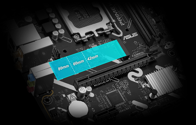 PRIME H610M-F WIFI предлагает один слот M.2, который поддерживает скорость передачи данных до 32 Гбит/с через PCIe 3.0, что позволяет быстрее загружать ОС и приложения с дисков ОС или приложений.