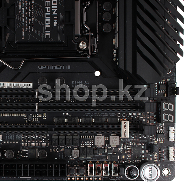 2 x AURA Addresable Gen 2 headers, 1 x AURA RGB header, 1 x BIOS Switch button, 1 x Clear CMOS header, 1 x FlexKey button, 1 x Front Panel Audio (AAFP), 1 x FS Mode switch, 1 x LN2 Mode jumper, 1 x Pause switch, 8 x Probelt Measurement Points, 1 x ReTry button, 1 x RSVD switch, 1 x Safe Boot button, 1 x Slow Mode switch, 1 x Speaker header, 1 x 10-1 pin System Panel header, 1 x Thermal Sensor header, 1 x Thunderbolt header