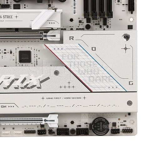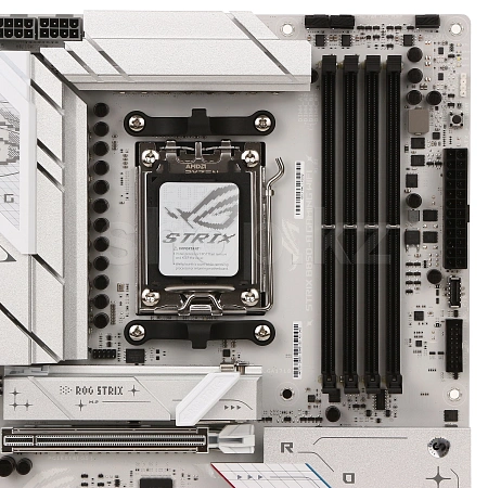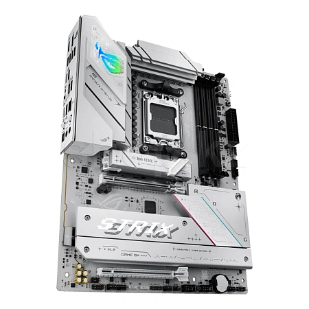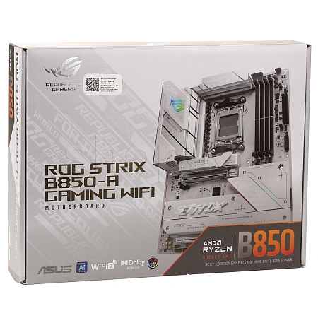 ROG Strix B850-A Gaming WiFi. Благодаря гладкой белой печатной плате и поддержке процессоров AMD Ryzen серии 9000 эта материнская плата обеспечивает мощность и возможности подключения, необходимые для передовых приложений искусственного интеллекта. Благодаря поддержке DDR5, полным возможностям PCIe 5.0, порту USB 20 Гбит/с и WiFi 7 она представляет собой идеальное сочетание стиля и производительности.