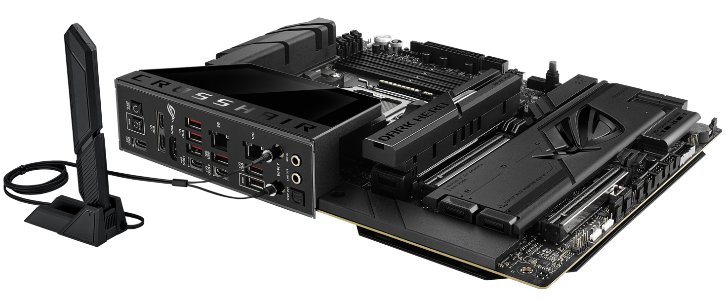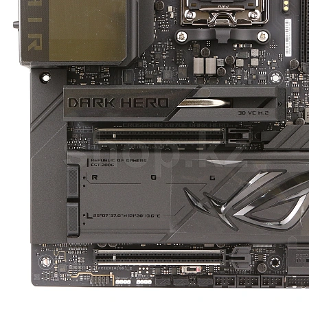 Материнская плата ROG Crosshair X870E Dark Hero, выполненная в элегантном, сдержанном черном дизайне, обеспечивает высокую производительность для высокопроизводительных сборок, благодаря надежной 20+2+2-ступенчатой ​​системе питания, поддержке высокоскоростной памяти DDR5 и новейшему интерфейсу PCIe 5.0.
