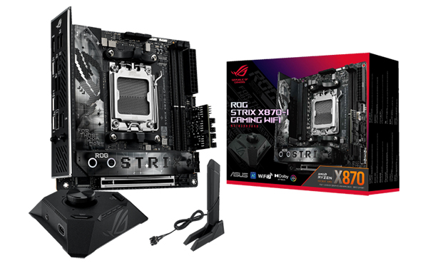 ROG Strix X870-I Gaming WiFi объединяет передовые технологии в элегантном форм-факторе mini-ITX, дополненном ROG Strix Hive II для упрощенного управления. Она оснащена слотами PCIe 5.0 для графики и накопителей, двухканальными слотами DDR5 и надежной системой питания для первоклассных игр и интенсивных нагрузок.