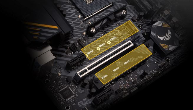 Материнские платы серии TUF Gaming B550M поддерживают слот PCIe 4.0 M.2 и обеспечивают поддержку NVMe SSD RAID для невероятного увеличения производительности. Создайте конфигурацию RAID с накопителями до PCIe 4.0, чтобы насладиться высочайшей скоростью передачи данных на процессорах AMD Ryzen 5000 серии/ 3000 серии.