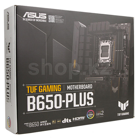 ASUS TUF Gaming B650-Plus - собраны все основные элементы новейших процессоров AMD Ryzen 7000-й серии, которые сочетаются с игровыми возможностями и проверенной временем надежностью. Благодаря компонентам военного класса, модернизированному решению питания и комплексной системе охлаждения эта материнская плата превосходит все ожидания, обеспечивая надежную и стабильную производительность для марафонских игр.