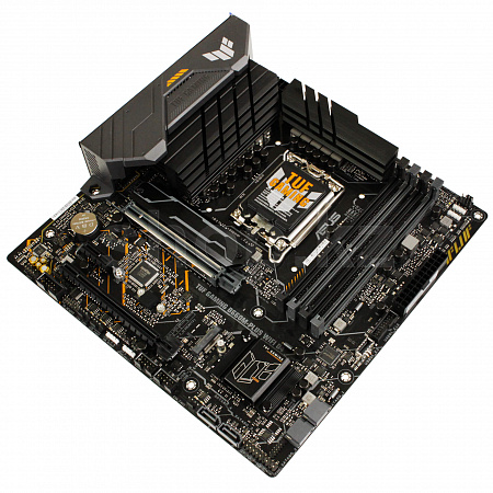 Эстетически TUF Gaming B660M-Plus WIFI D4 украшена новым логотипом TUF Gaming и включает в себя простые геометрические элементы дизайна, отражающие надежность и стабильность, характерные для серии TUF Gaming.