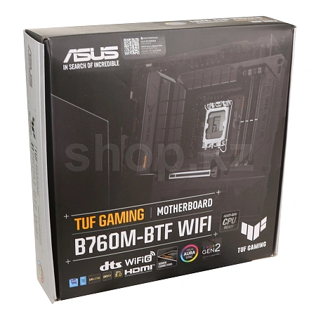 TUF GAMING B760M-BTF WIFI берет все основные элементы новейших процессоров Intel и объединяет их с готовыми к игре функциями и проверенной прочностью. «BTF» означает «Назад в будущее» для новой эры для всех геймеров PC DIY; серия BTF скрывает свои разъемы на нижней стороне материнской платы для чистой прокладки кабелей и минималистичного внешнего вида сборки.