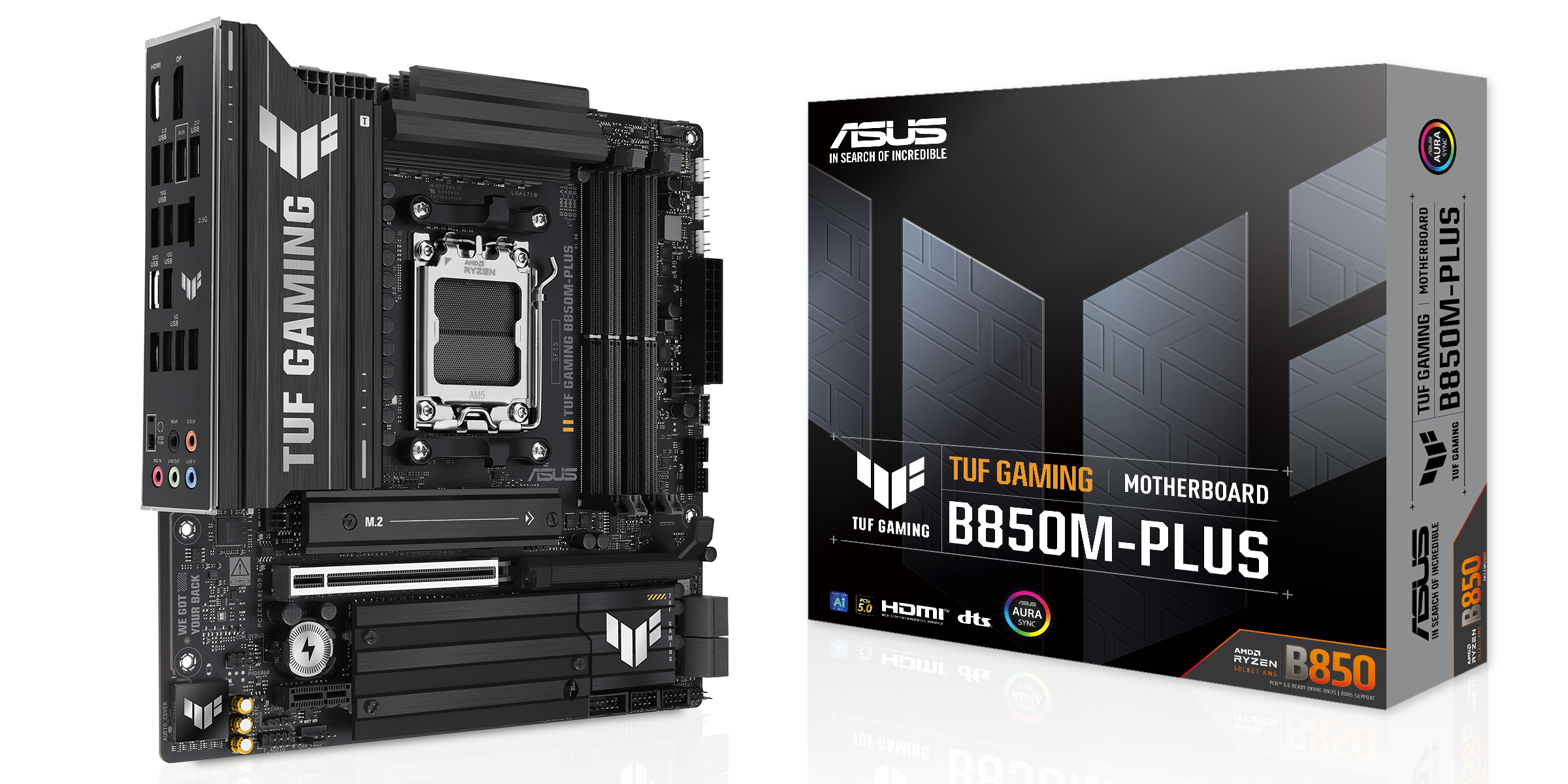SUS TUF GAMING B850M-PLUS сочетает в себе все основные элементы новейших процессоров AMD Ryzen с функциями, необходимыми для игр, и проверенной надежностью. Эта материнская плата, разработанная с использованием компонентов военного уровня, усовершенствованной системы питания и комплексной системы охлаждения, превосходит все ожидания благодаря своей надежности и стабильной производительности для марафонских игровых сессий.