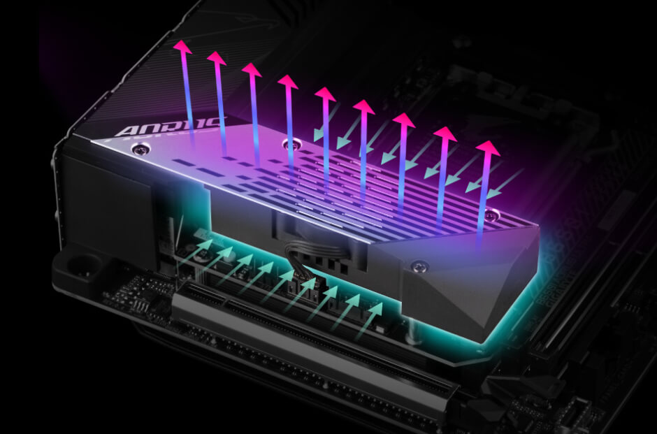 Исключительно высокая производительность платформ на базе материнских плат GIGABYTE обусловлена, в том числе, грамотно спроектированной и оптимизированной системой охлаждения, которая обеспечивает стабильную работу ЦП, системной логики и твердотельных накопителей на фоне комфортного температурного режима, даже в условиях значительных нагрузок (ресурсоемкие специализированные приложения и современные видеоигры).