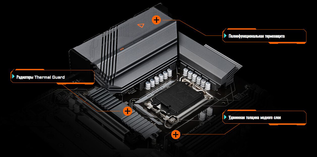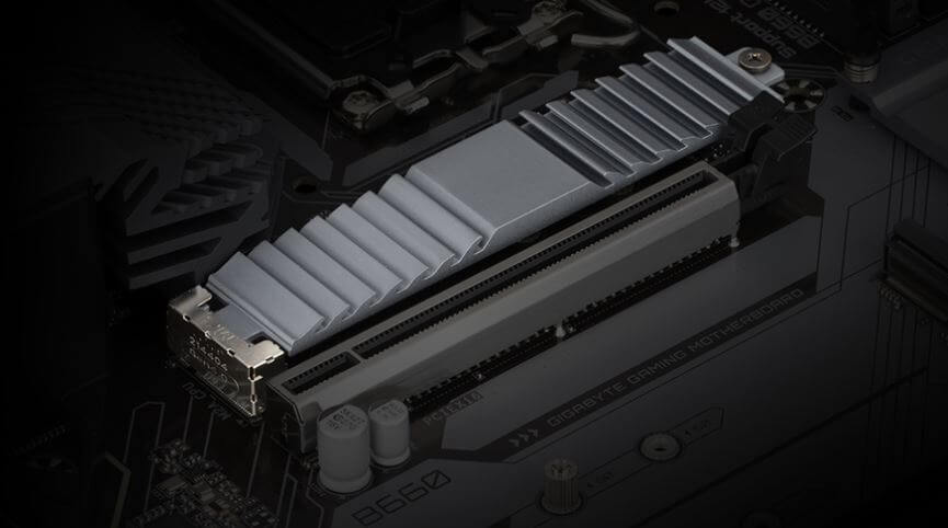 Продолжительность срока службы M.2 SSD-накопителей зависит от надлежащего охлаждения. Своевременно и эффективно рассеивая тепло, фирменные радиаторы Thermal Guard в составе материнских плат Gigabyte не допускают падения производительности M.2-накопителей вследствие перегрева микросхем флэш-памяти.